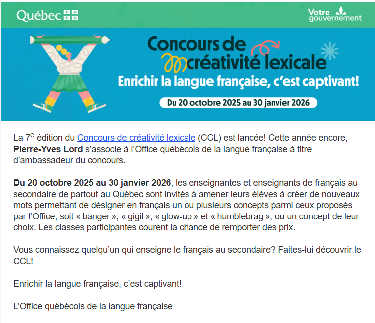 Concours de créativité lexicale, 7e édition 22 octobre 202522 octobre 2025 Concours de créativité lexicale